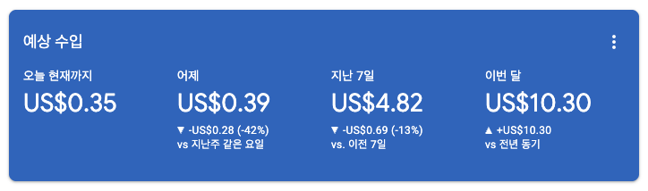 그리고 또 놀라운 건, 구글 애드센스 승인과 수익이에요. 처음 0.1달러가 찍히는 순간부터 10, 20, 30 올라가는게 보이는데, “오 이게 진짜 되긴 되는거 맞구나!” 싶었습니다.