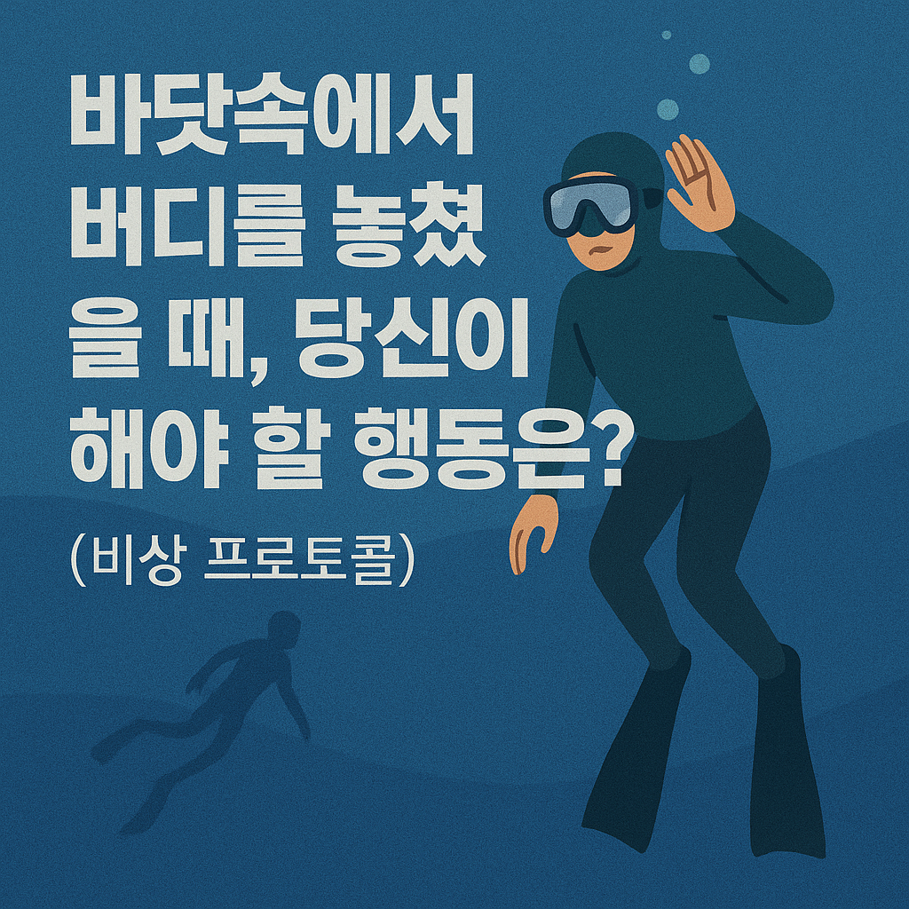 바닷속에서 버디를 놓치는 것은 누구에게나 일어날 수 있는 일입니다. 하지만 그것이 아찔한 사고가 될지, 아니면 침착하게 해결하는 해프닝이 될지는, 바로 이 '비상 프로토콜'을 알고 있느냐, 그리고 버디와 미리 약속했느냐에 달려있습니다.