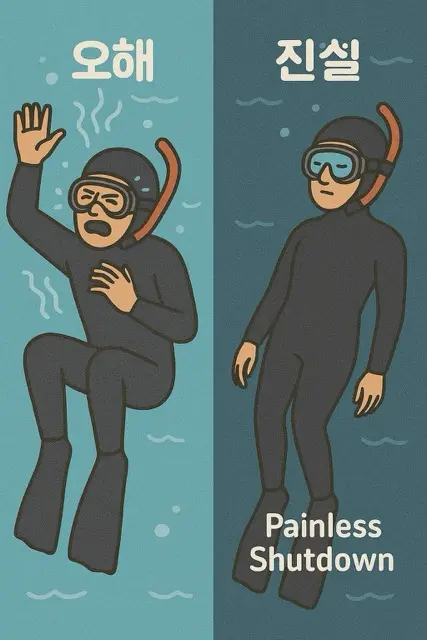 하지만 블랙아웃은 아무런 신호 없이 찾아옵니다. 즉, 다이버 스스로는 자신을 구할 수 있는 기회가 단 1초도 주어지지 않는다는 뜻입니다. 이것이 바로 '고통 없는 블랙아웃'의 가장 무서운 진실입니다.