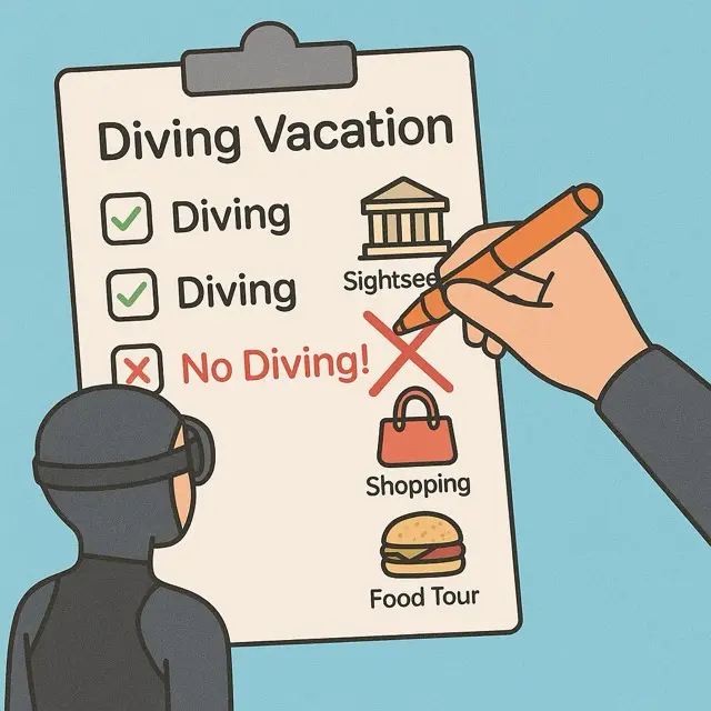 여러분은 다이빙 여행 마지막 날을 어떻게 보내시나요? 나만의 'No-Fly 시간' 활용 꿀팁이 있다면 댓글로 공유해주세요!